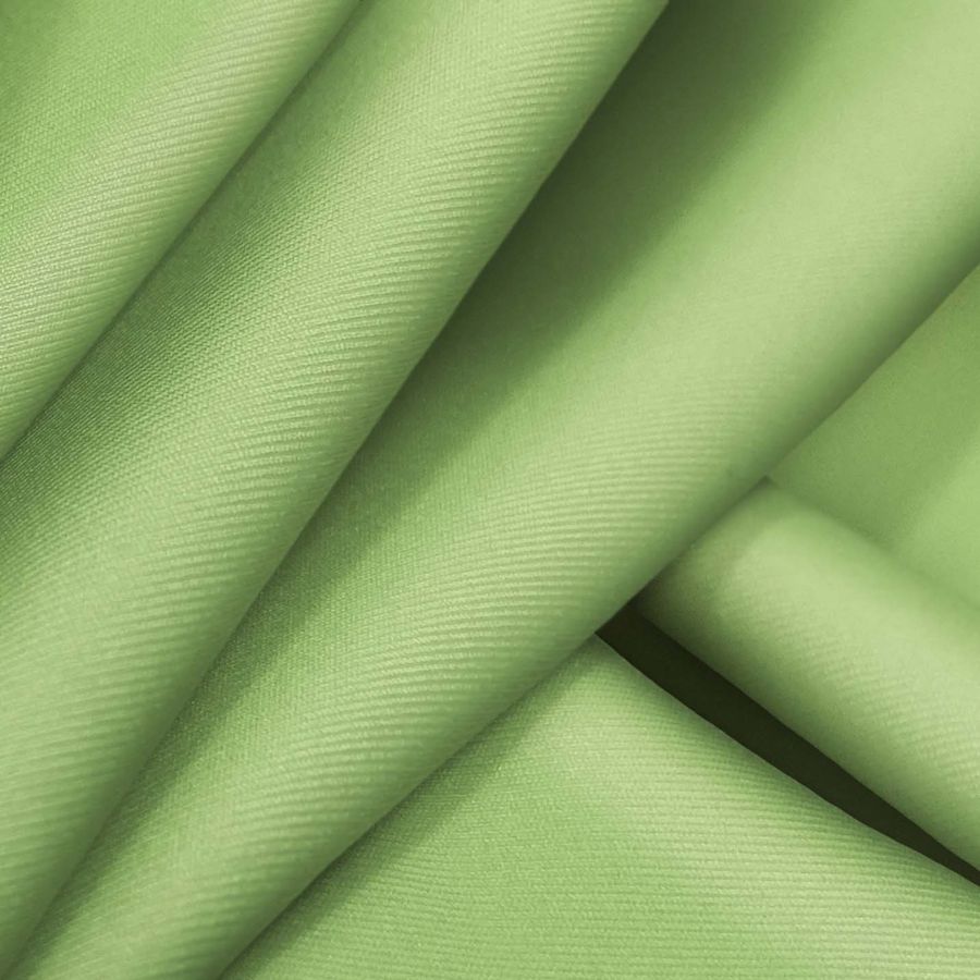 La tela base es Lycra Reciclada - Recycled de 190 gr/m2, compuesta por 85% poliéster y 15% elastano, con una textura suave y elástica. El color liso impreso es un tono de verde inspirado en el billete de un dólar, con un CMYK de 52 9 72 0, y está impreso a una sola cara por impresión digital textil.