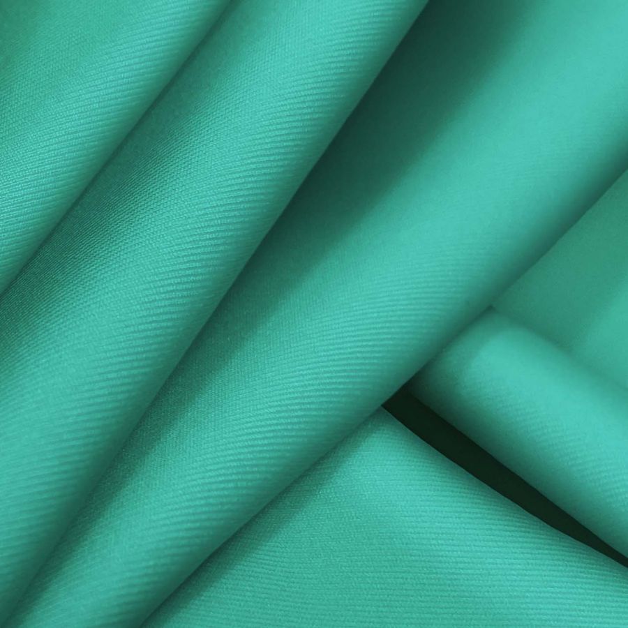 La tela base es Lycra Reciclada - Recycled de 190 gr/m2 en una tonalidad verde menta con un CMYK de 75 15 55 2. Este color evoca la frescura y la tranquilidad de la naturaleza, es armonioso y relajante. Combina bien con tonos tierra, neutros y colores pastel. Es importante destacar que la tela está impresa con el color liso a una sola cara por impresión digital textil, lo que significa que el color se aplica en una capa superficial en lugar de ser absorbido por la tela en su totalidad.