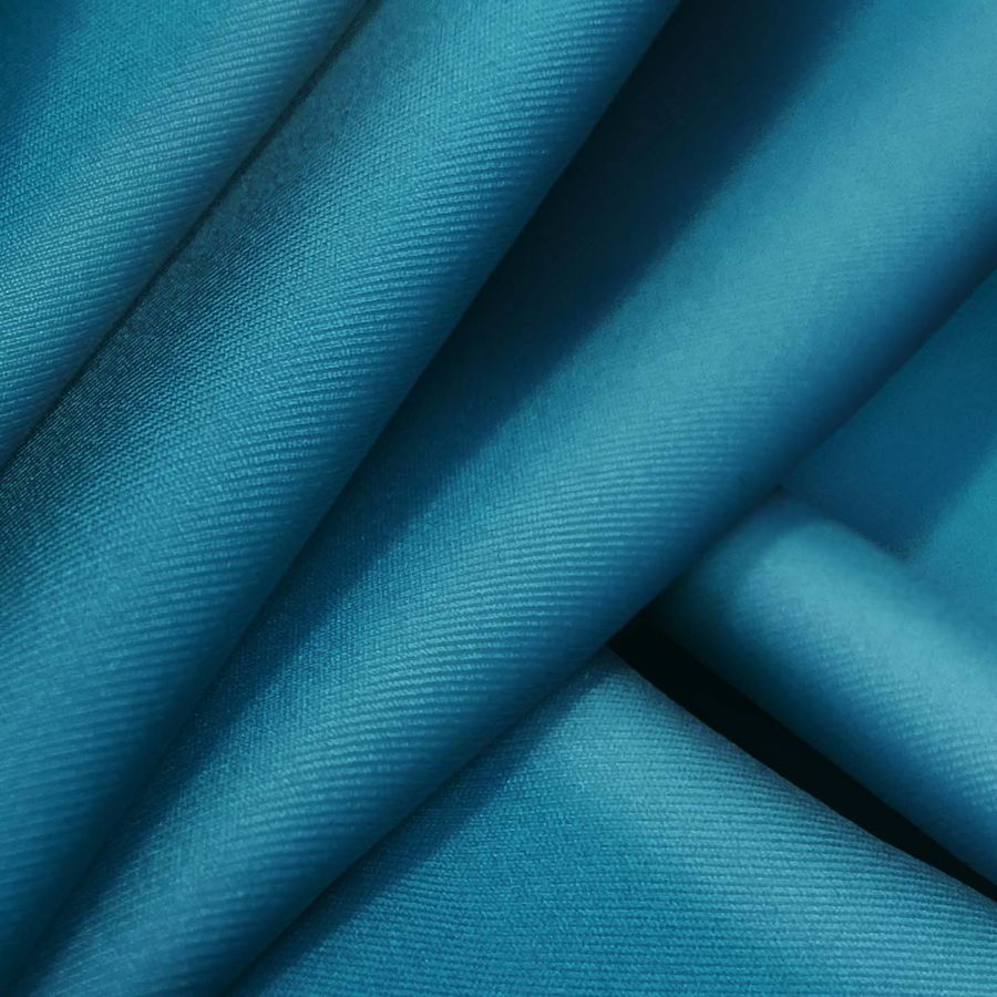 La tela Lycra Reciclada - Recycled de 190 gr/m2 es una tela resistente y elástica compuesta por un 85% de poliéster y un 15% de elastano. Su color liso impreso en Azul Hielo glacial tiene un CMYK de 89 46 32 17, lo que le confiere un tono suave y delicado. Este color combina perfectamente con tonalidades claras y pastel, y puede contrastar de manera interesante con colores oscuros como el negro o el gris.