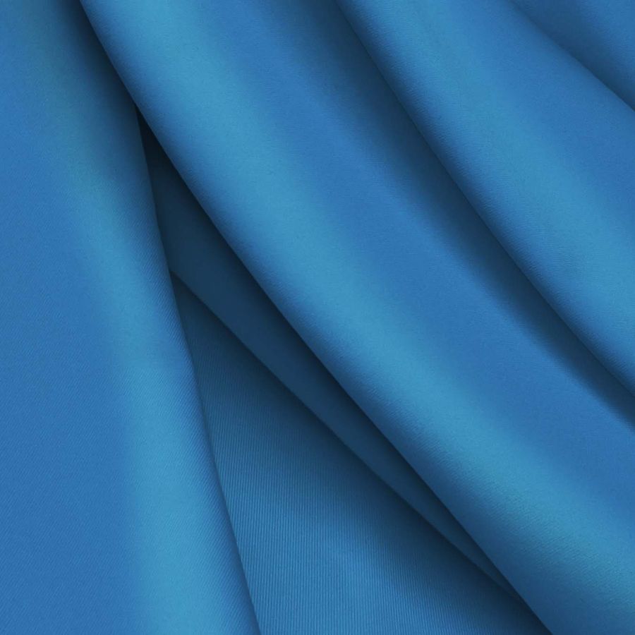 La tela base es Lycra Reciclada - Recycled de 190 gr/m2, una tela Lycra con composición de 85% poliéster y 15% elastano. El color impreso es Azul Windows, representado por un CMYK de 81 48 4 0. Este color es un tono de azul vibrante con toques de turquesa y verde y combina especialmente bien con tonos de turquesa, verde y blanco. Cabe destacar que el tejido está impreso con el color liso a una sola cara por impresión digital textil, lo que significa que la cara opuesta de la tela es blanca.