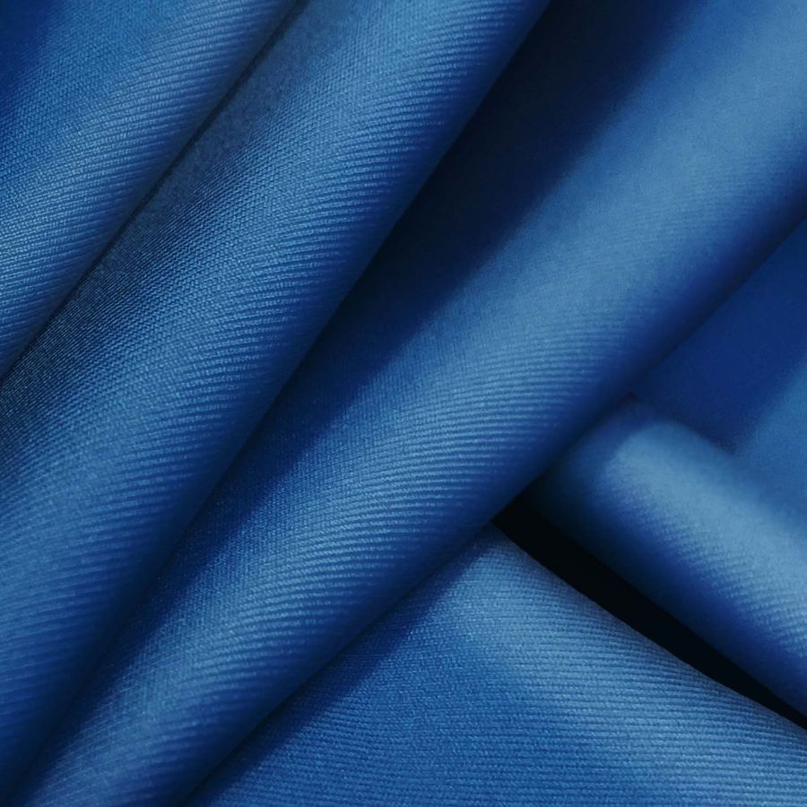 La tela base es Lycra Reciclada - Recycled de 190 gr/m2, compuesta por 85% poliéster y 15% elastano, con un gramaje de 190 gr/m2 y ancho de 150 cm. El color liso impreso es Azul Arrendajo, con un CMYK de 100 75 22 7. Este color secundario es una mezcla entre el tono del arrendajo azul y el cian, creando así un tono azul fresco y vibrante que se combina bien con acordes de turquesa y blanco. La tela está impresa a una sola cara por impresión digital textil.