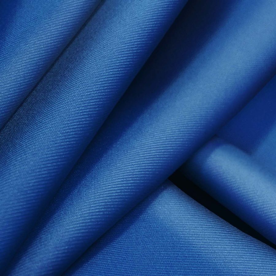 La tela base es Lycra Reciclada - Recycled de 190 gr/m2, compuesta por 85% de poliéster y 15% de elastano, con un gramaje de 190 gr/m2 y un ancho de 150 cm. El color liso impreso es de un intenso Azul arándano con un ajuste de tinta de 100% de Cyan, 77% de Magenta, 13% de Yellow y 2% de Black en un perfil de color CMYK de 100 77 13 2. Este Azul arándano simboliza la serenidad, la lealtad, la sabiduría y la armonía. Técnicamente, el color combina perfectamente con tonos Tierra como el Marrón y el Beige, tonos Neutros como el Gris y el Blanco, y tonos secundarios Violeta, Naranja y Rosa. Es importante destacar que la tela está impresa con el color liso a una sola cara por impresión digital textil.
