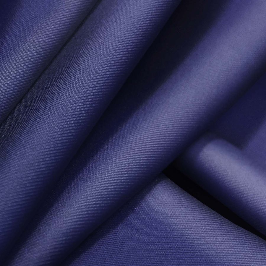 La tela base es Lycra Reciclada - Recycled de 190 gr/m2, compuesta por 85% POLIÉSTER y 15% ELASTANO, con un gramaje de 190 gr/m2 y un ancho de 150 cm. El color liso impreso es Azul, Noche azul, con un CMYK de 99 95 32 24. El color secundario es una tonalidad profunda de azul marino, que refleja elegancia y sofisticación. Combina fácilmente con colores como blanco, gris, rosa y dorado.