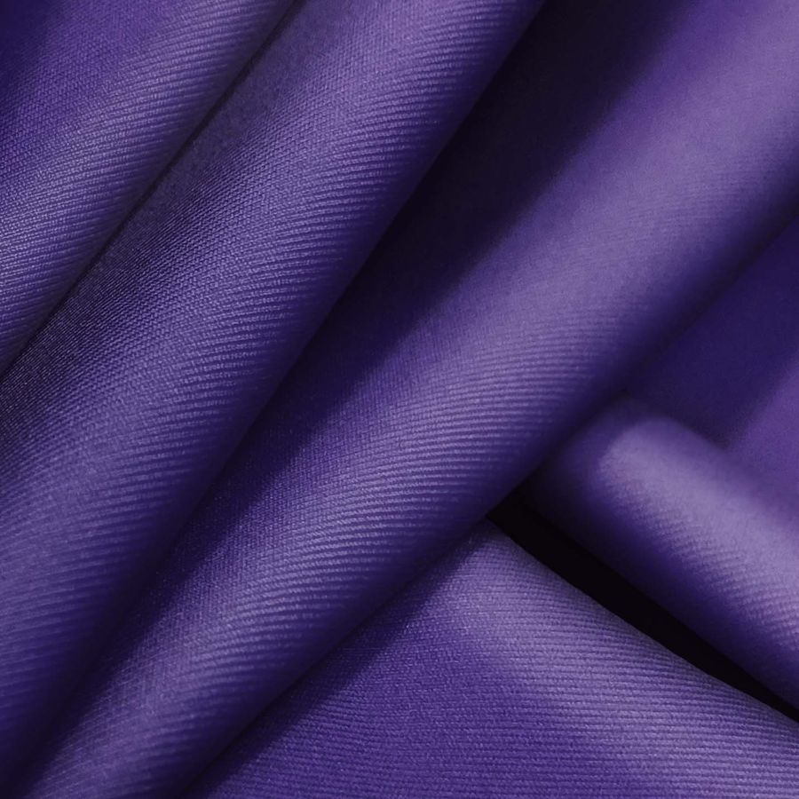 La tela base es la Lycra Reciclada - Recycled de 190 gr/m2, con composición de 85% poliéster y 15% elastano. Esta tela de lycra es resistente y elástica, pero también suave al tacto y cómoda de llevar. El color liso impreso en esta tela es un Morado DarkSlateBlue intenso, que se obtiene con una mezcla de tinta cian, magenta y amarilla, y una pequeña cantidad de tinta negra, con un CMYK de 95 100 23 10. Este color secundario transmite elegancia y sofisticación, y combina muy bien con otros tonos morados y azulados, así como con colores neutros como el gris o el negro.