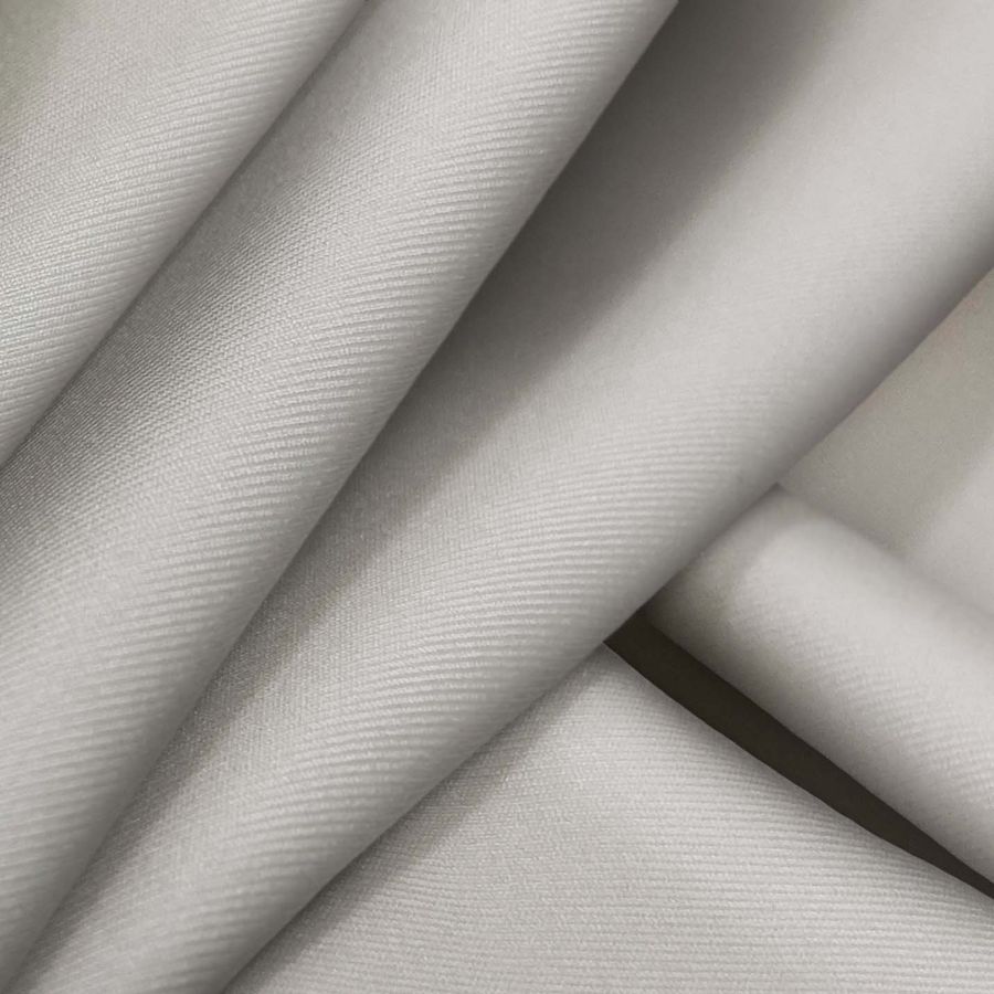 La tela base es Lycra Reciclada - Recycled de 190 gr/m2 en color gris con pigmentos de verde salvia. El color liso impreso se compone de Cyan 33, Magenta 27, Yellow 31 y Black 7, con un CMYK de 33 27 31 7. El color verde salvia es un tono suave entre verde y gris, lo que aporta una sensación de paz y tranquilidad. Combina bien con tonos grises, azules y dorados. Esta tela está impresa con un color liso en una sola cara por impresión digital textil.