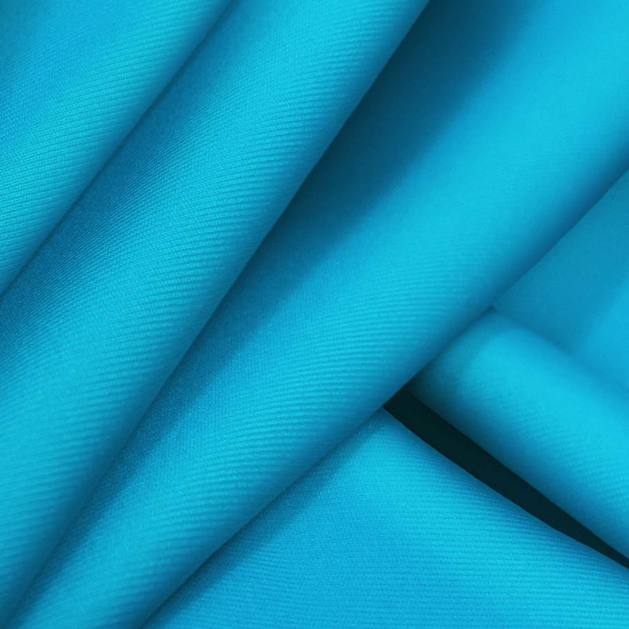 La tela base es Lycra Reciclada - Recycled de 190 gr/m2, compuesta por 85% poliéster y 15% elastano, con un gramaje de 190 gr/m2 y un ancho de 150 cm. El color liso impreso es un Azul/Azul neón con un CMYK de 76 23 1 0. Este color secundario se caracteriza por ser vibrante, eléctrico y moderno, ideal para prendas deportivas y de baño. Complementa perfectamente con tonos neutros como el blanco o el gris. La tela está impresa a una sola cara por impresión digital textil.