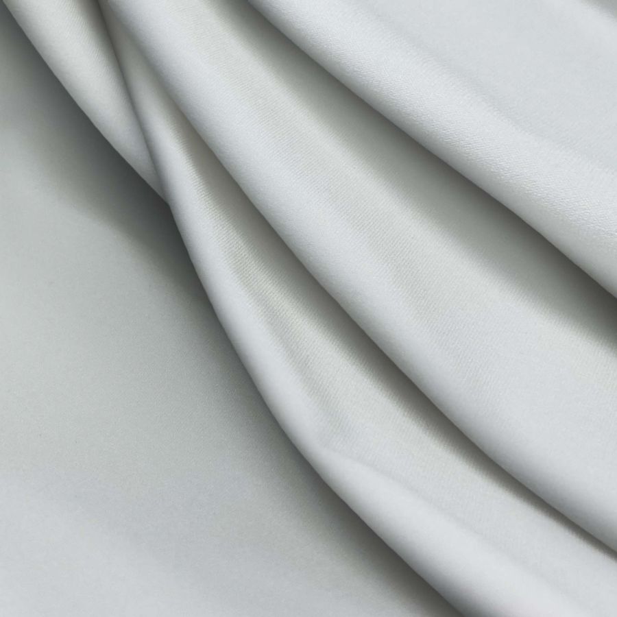 La tela base es una Lycra Reciclada de 230 gr/m2 con 75% de poliéster y 25% de elastano. El color liso impreso es Gris con un toque de plata metálica, representado en el CMYK como 22 12 15 0. El color secundario tiene una elegancia sutil y moderna y se combina bien con distintos grises, blancos, rosas y azules pastel. Es importante destacar que la tela está impresa con el color liso a una sola cara por impresión digital textil.
