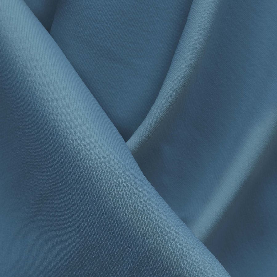 La tela base es una Lycra Reciclada - Seal de 230 gr/m2, con una composición de 75% poliéster y 25% elastano, y un ancho de 150 cm. El color liso impreso es un Azul Koi con un CMYK de 63 32 18 3. Este color se caracteriza por ser un azul verdoso intenso y vibrante, que transmite energía y vitalidad. Combina perfectamente con tonalidades neutras como el blanco o el beige, pero también funciona muy bien con tonalidades fuertes como el rojo o el amarillo.