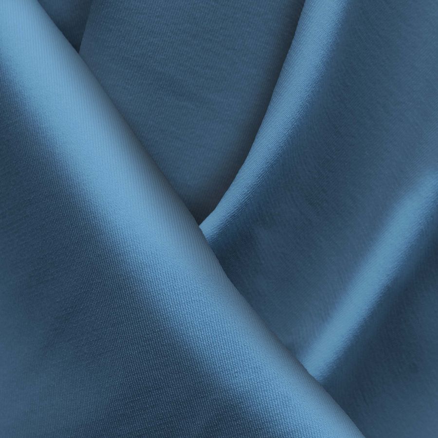 La Lycra Reciclada - Seal de 230 gr/m2 es una tela elástica compuesta de un 75% de poliéster y un 25% de elastano. Su color liso impreso es un vibrante Azul Arrendajo, cuya tonalidad se obtiene a partir de una tinta cyan del 81%, una magenta del 54%, una yellow del 32% y una black del 17%, combinados en el modelo de impresión de color CMYK. Además de armonizar perfectamente con el cian, este color también se combina armónicamente con tonos verdes y amarillos, generando una sensación fresca y natural.