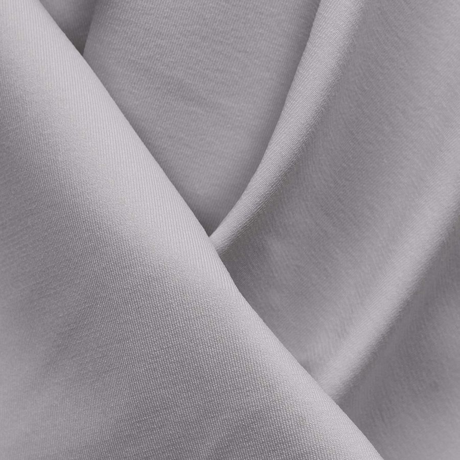 La tela base es la Lycra Reciclada - Seal de 230 gr/m2, una tela elástica y resistente comúnmente utilizada en prendas deportivas, baño y lencería. El color liso impreso es un Gris Platino, que se obtiene utilizando una combinación de tintas Cyan, Magenta y Yellow en proporciones de 9, 9 y 6 respectivamente, con un componente de tinta Black de 0, lo que resulta en un tono platino elegante y sofisticado. Este color combina muy bien con tonos claros como beige y blanco, así como con tonos oscuros como el negro y el azul marino.
