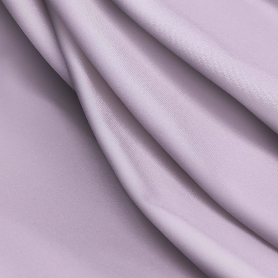 La tela base es la Lycra Reciclada - Seal de 230 gr/m2, compuesta en un 75% de poliéster y un 25% de elastano. El color liso impreso es de un hermoso tono morado, con tintas Cyan de 24, Magenta de 35, Yellow de 4 y Black de 0, para un CMYK de 24 35 4 0. Este color tiene toques de malva y combina perfectamente con tonos neutros como el gris o el negro.