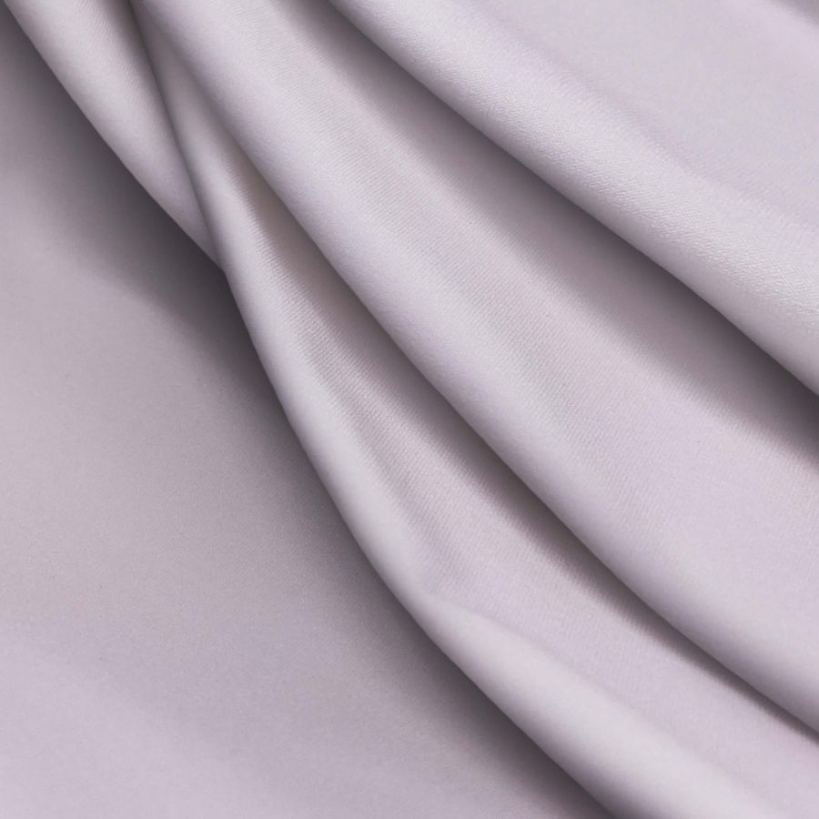 La tela base es Lycra Reciclada - Seal de 230 gr/m2 de composición 75% poliéster y 25% elastano, de color liso impreso en tono morado Wisteria púrpura con un CMYK de 22 28 9 0 y tecnología de impresión por sublimación. El color secundario es un tono violeta suave con destellos rosados, que combina especialmente bien con tonos lilas, magentas y rosados. La tela es texturizada, elástica y resistente al cloro, con un factor de protección UV muy alto de 50+.