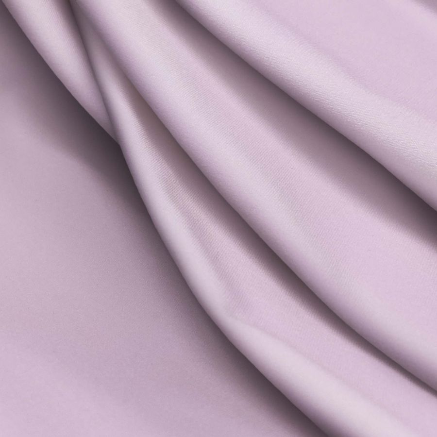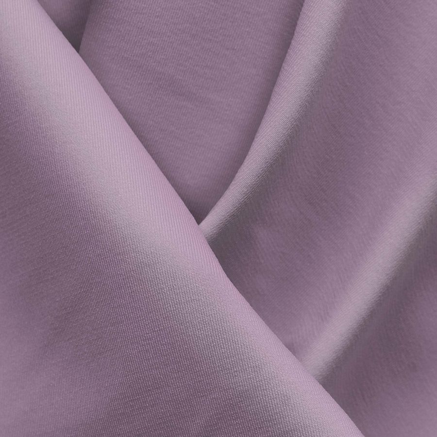 La tela base es la Lycra Reciclada - Seal con un gramaje de 230 gr/m2, compuesta por un 75% de poliéster y un 25% de elastano. Esta tela tiene una textura elástica y suave al tacto, es resistente a los químicos y al desgaste, y cuenta con una protección UV muy alta de 50+. El color liso impreso es morado cardo, con una mezcla de tintas que resulta en un CMYK de 16 35 4 0. Es un color vibrante y llamativo que combina muy bien con tonos neutros como el blanco y el negro, así como con tonos terrosos como el beige y el marrón.