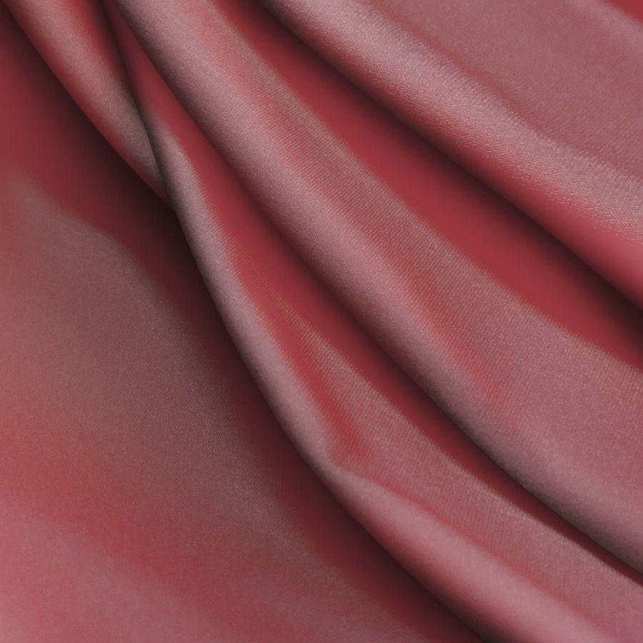 La tela base es Lycra Reciclada - Seal de 230 gr/m2 en color liso impreso Marron Noche de Sangre, con un CMYK de 36 73 52 48. Este color es simbólico ya que representa la intensidad de la sangre en la noche, y técnicamente se define como un rojo oscuro con matices marrones. Combina bien con tonos neutros como el blanco y el negro, así como con tonos marrones, verdes oscuros y dorados. El tejido está impreso con el color liso a una sola cara por impresión digital textil, lo que asegura la calidad y fidelidad del color.