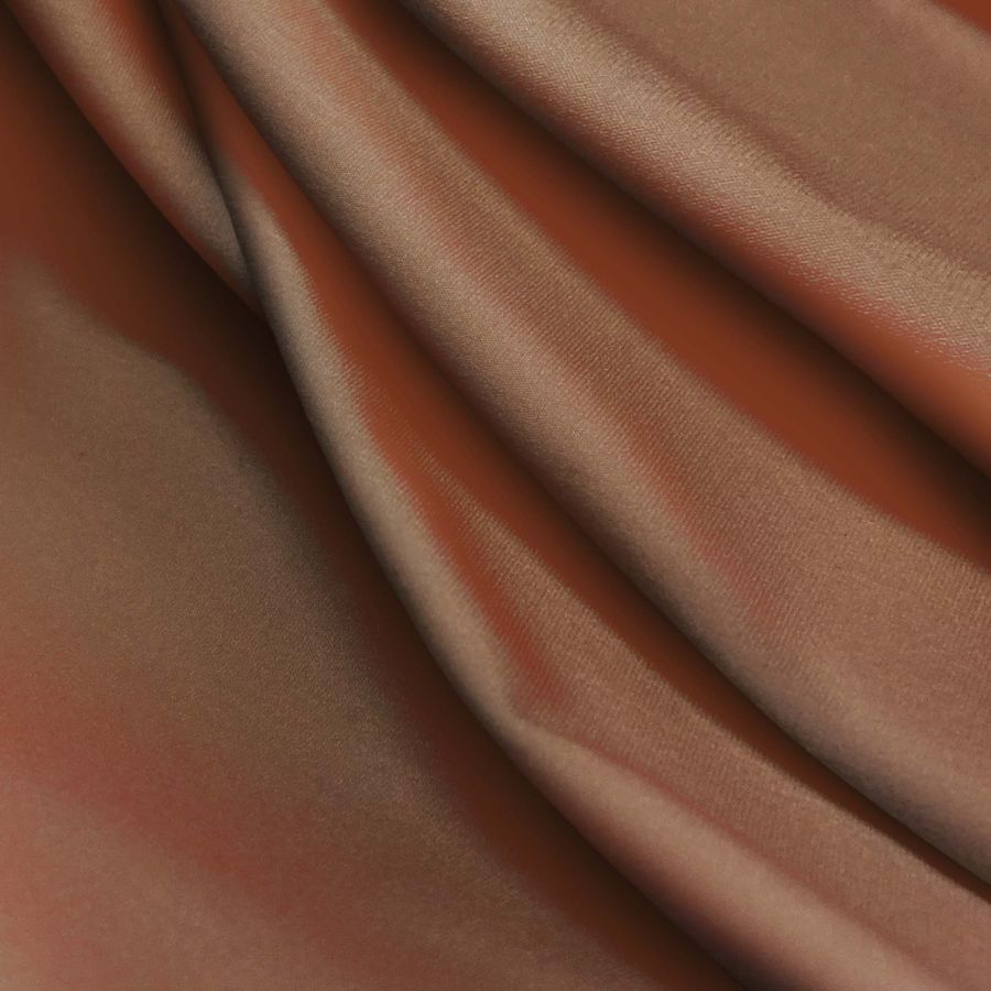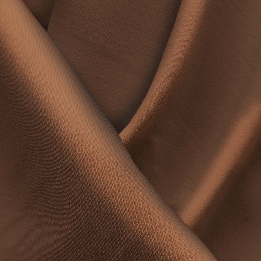 La tela base de la que hablamos es la Lycra Reciclada - Seal de 230 gr/m2, un tejido elástico, resistente y sostenible compuesto por un 75% de poliéster y un 25% de elastano. En cuanto al color, estamos hablando de un marrón oscuro llamado "Panaderos Marrón", cuyo CMYK es 40 66 78 56 y que combina perfectamente con tonos amarillos y naranjas cálidos.