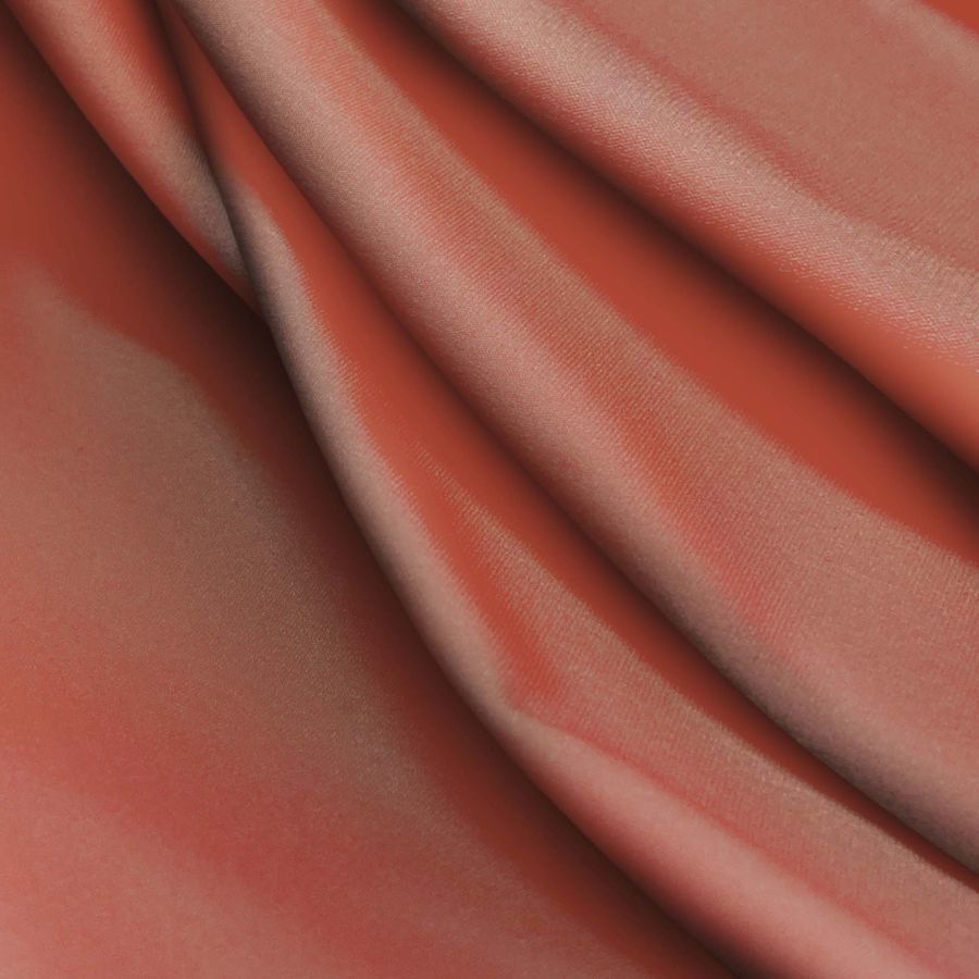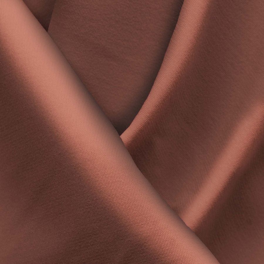 La tela base de este tejido es llamada Lycra Reciclada - Seal, compuesta por 75% poliéster y 25% elastano con un gramaje de 230 gr/m2 y un ancho de 150 cm. En cuanto a su color liso impreso, este presenta una combinación de marrón y sepia con un CMYK de 34 69 68 42. Este color secundario ofrece una sensación cálida y rústica que se puede combinar perfectamente con tonalidades de verde esmeralda, beige, dorados y amarillos oscuros. Es importante mencionar que la tela está impresa con el color liso en una sola cara por impresión digital textil, no es un tejido tintado sino impreso por una sola cara.