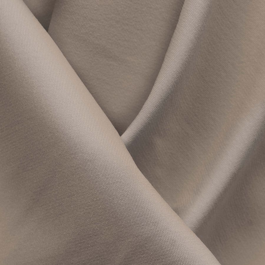 La tela base es la Lycra Reciclada - Seal de 230 gr/m2, compuesta por un 75% de poliéster y un 25% de elastano, lo que proporciona una textura elástica y un tacto suave. El color liso impreso en la tela es un marrón cobrizo claro, representado por el CMYK 17 24 30 3, que combina armoniosamente con tonos neutros y tierra como el beige o el caqui.