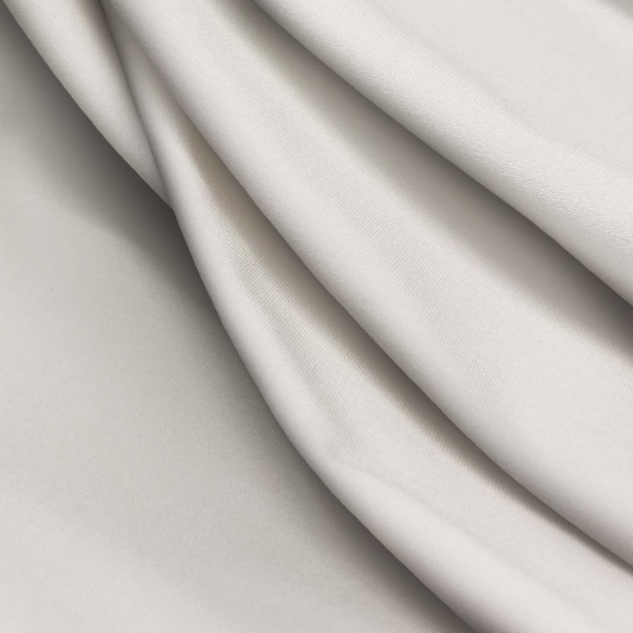 La tela base es la Lycra Reciclada - Seal de 230 gr/m2, compuesta por 75% de poliéster y 25% de elastano. Su color liso impreso es Crudo/Lino, con un CMYK de 9 12 15 0. Este color secundario refleja un matiz natural y elegante, que combina muy bien con otros tonos suaves y pasteles, como el rosa pálido, el mint o el beige. Es una tela impresa por una sola cara mediante impresión digital textil.