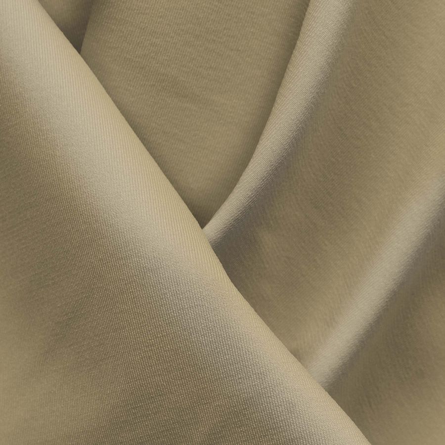 La tela base es la Lycra Reciclada - Seal de 230gr/m2, compuesta por 75% de poliéster y 25% de elastano, con un gramaje de 230gr/m2 y un ancho de 150cm. El color liso impreso en marrón trigo resalta la elegancia y sofisticación. Su CMYK de 15 20 43 2 hace que se vea un tono marrón claro con un tinte amarillo que le otorga calidez. Combina con rojos y morados para conseguir un mayor peso en cuanto a elegancia. La tela está impresa a una sola cara por impresión digital textil.
