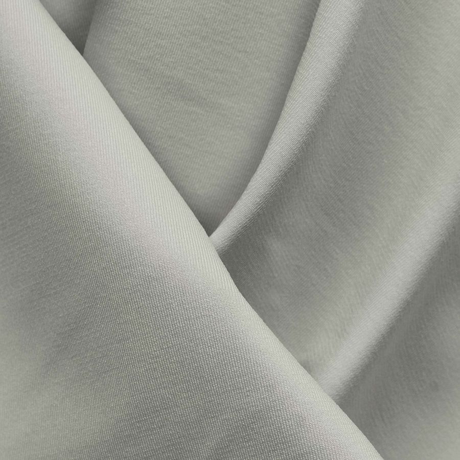 La tela base es Lycra Reciclada - Seal de 230 gr/m2, una tela elástica y resistente compuesta por un 75% de poliéster y un 25% de elastano. Tiene un gramaje de 230 gr/m2 y un ancho de 150 cm. El color liso impreso es Crudo-Beige con un CMYK de 9 5 15 0, lo que le da un tono suave y natural.