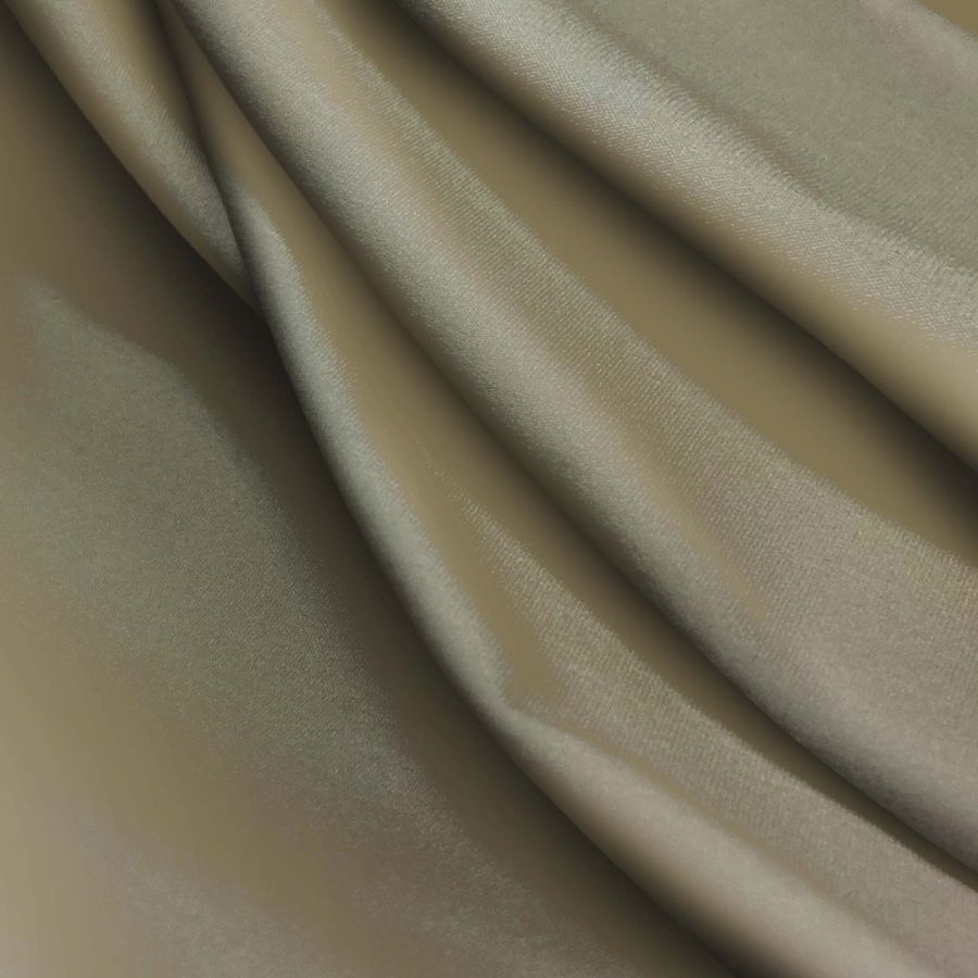 La tela base es Lycra Reciclada - Seal de 230 gr/m2 con una composición de 75% poliéster y 25% elastano. El color liso impreso es Marrón Moca y se representa mediante CMYK co-ordenadas de 53, 46, 60 y 41. Este color evoca a la tierra y la calidez, generando una sensación tranquilizadora y cálida. El marrón moca combina muy bien con diferentes tonos de blanco, crema e incluso algunos tonos de verde y azul turquesa.