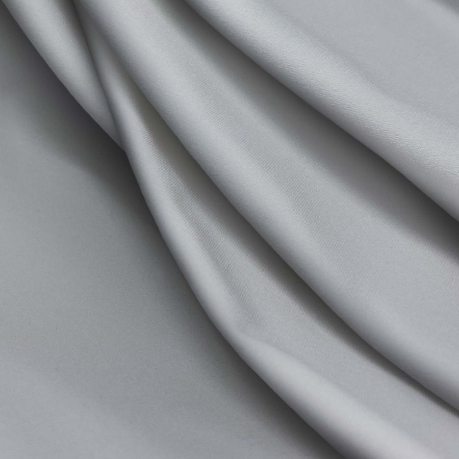 La tela base es Lycra Reciclada - Seal de 230 gr/m2 con una composición de 75% poliéster y 25% elastano. El color liso impreso es Gris Plata Romana, con un CMYK de 42 32 28 8. El color es un gris claro con un toque de brillo que le da una sensación de metal líquido. Combina bien con otros tonos fríos, como azules y plateados.