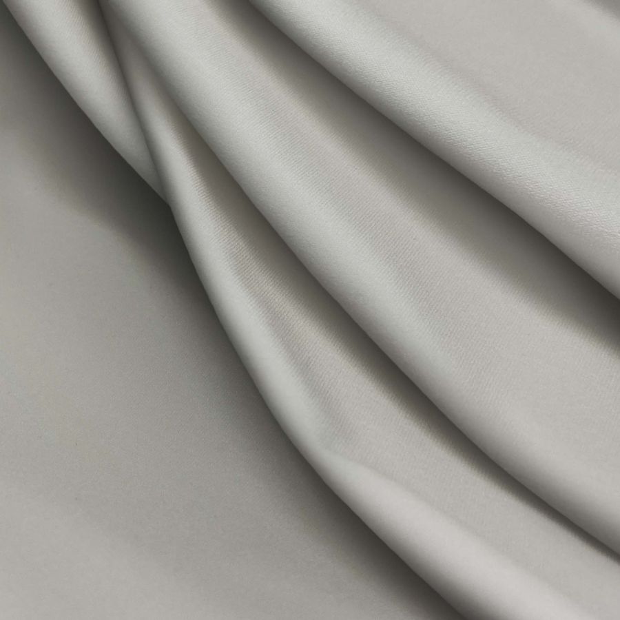 La tela base es Lycra Reciclada - Seal de 230 gr/m2, compuesta de 75% poliéster y 25% elastano. El color liso es una mezcla de gris y verde salvia, con un CMYK de 36 28 33 8. Este color es fresco y elegante, y combina bien con colores neutros como blanco o negro, así como con tonos tierra y pasteles.