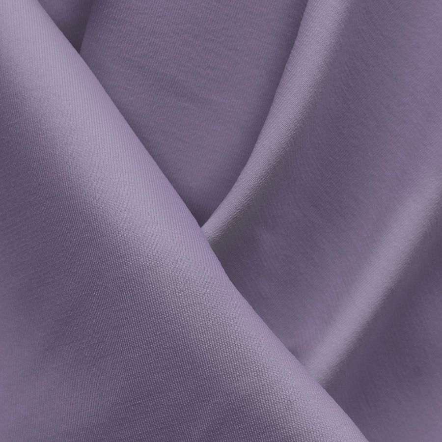 La tela base es Lycra Reciclada - Seal de 230 gr/m2, compuesta por un 75% de Poliéster y un 25% de Elastano, con un gramaje de 230 gr/m2 y un ancho de 150 cm. El color liso impreso es Morado/Púrpura medio, con un contenido de tinta Cyan de 35, Magenta de 40, Yellow de 5 y Black de 0 y un CMYK de 35 40 5 0. En cuanto al color secundario, podemos decir que el morado es un color frío que representa la introspección, la sensibilidad y la espiritualidad. Combina muy bien con colores tanto fríos como cálidos, especialmente con verdes, grises, beiges y rosas pálidos.
