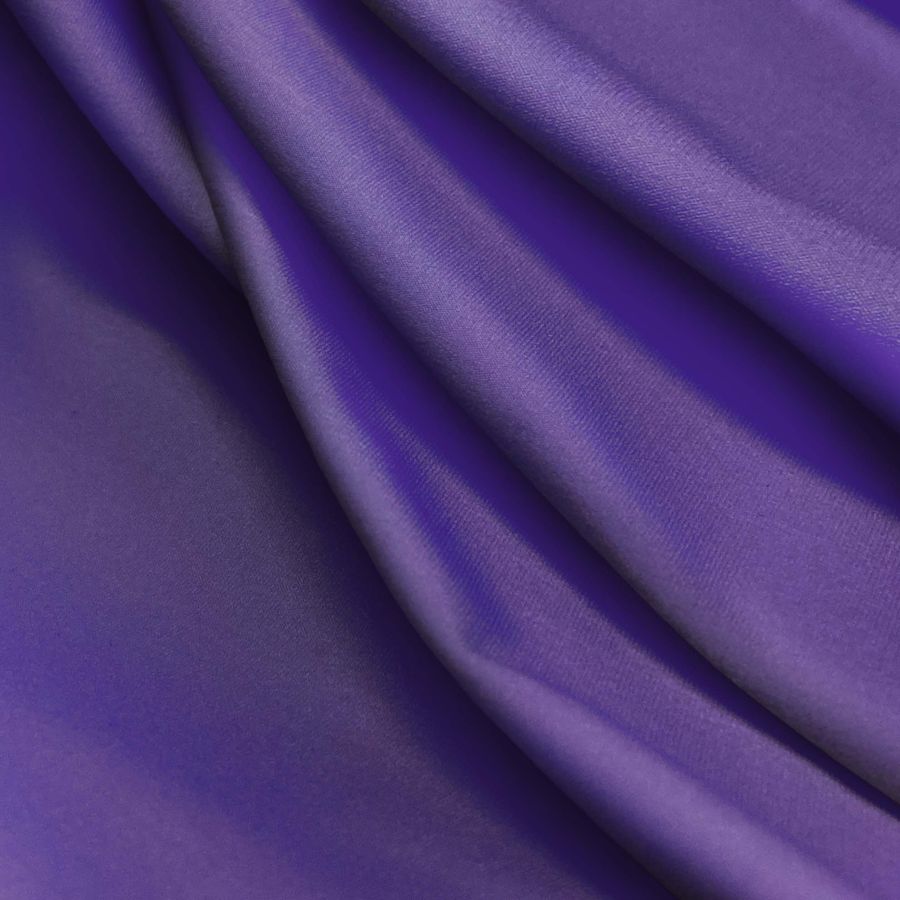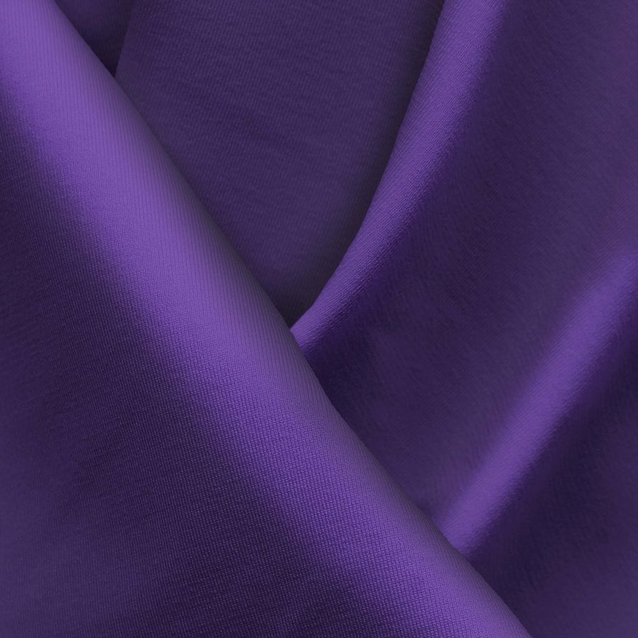 La tela base es la Lycra Reciclada - Seal de 230 gr/m2, compuesta por un 75% de poliéster y un 25% de elastano. Su color liso impreso es un morado con tonalidades de neblina púrpura, siendo su CMYK 91 100 25 15. Este color se caracteriza por su elegancia y sutileza, que inspiran tranquilidad y relajación. Además, combina muy bien con tonalidades neutras, grises y blancos.