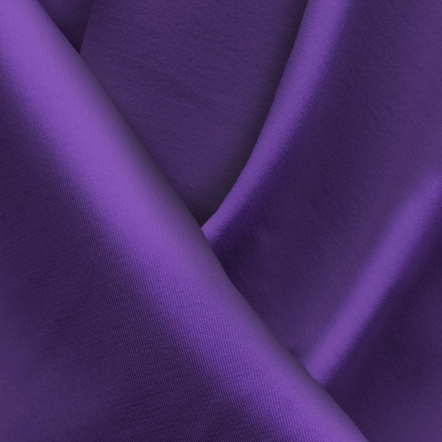 La tela base de este producto es Lycra Reciclada - Seal de 230 gr/m2, compuesta por 75% POLIÉSTER y 25% ELASTANO, con un ancho de 150 cm y un gramaje de 230 gr/m2. El color liso impreso es Morado Iris, con un CMYK de 88 99 20 9. Este color es un tono púrpura intenso con cierto matiz azulado, lo que lo hace perfecto para diseños de ropa deportiva, lencería y baño. Este color secundario combina especialmente bien con tonos neutros como el gris o el negro, y también puede combinarse con tonos cálidos como el rosa o el rojo.