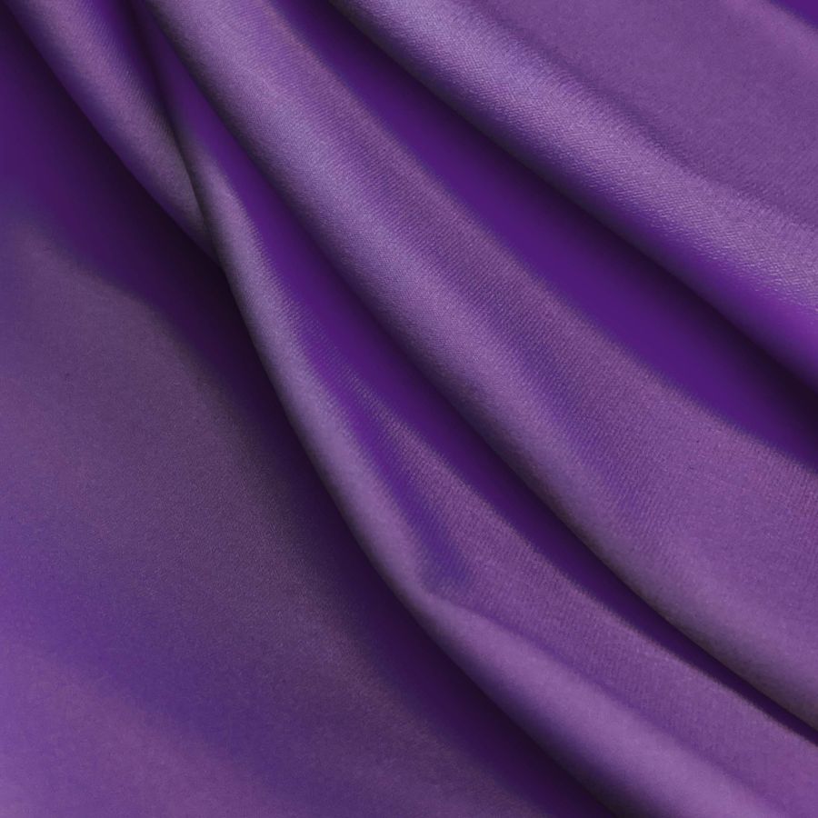 La tela base es Lycra Reciclada - Seal de 230 gr/m2, una tela elástica y resistente compuesta por 75% poliéster y 25% elastano. El color liso impreso en esta tela es un morado oscuro con un CMYK de 83 100 28 17. Este color se caracteriza por ser intenso y vibrante, y combina especialmente bien con tonalidades más suaves, como el rosa pastel o el gris claro.