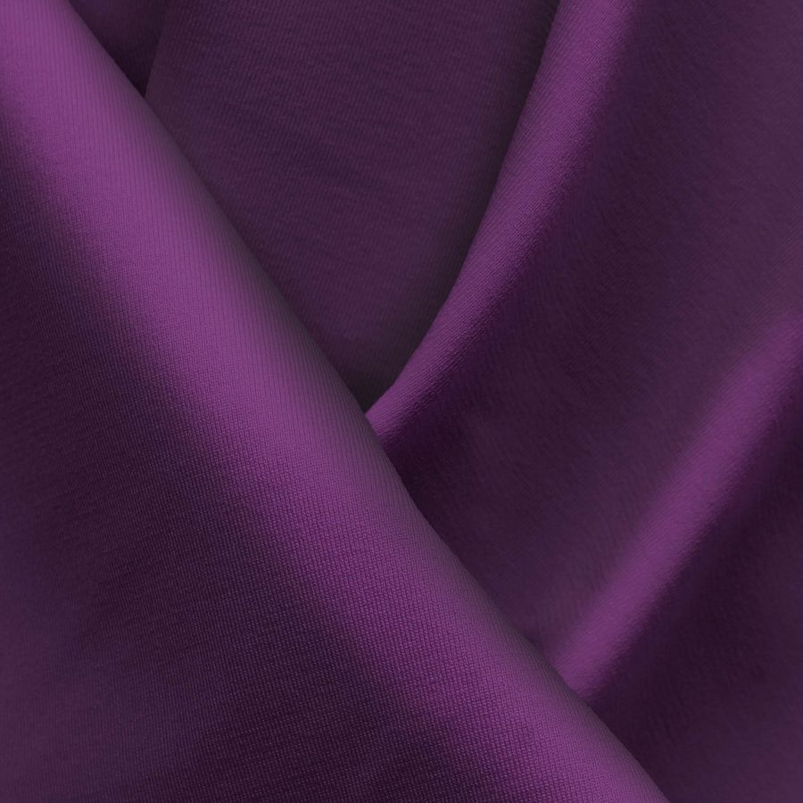 La tela base es la Lycra Reciclada Seal de 230 gr/m2, compuesta por 75% poliéster y 25% elastano, con un gramaje de 230 gr/m2 y un ancho de 150 cm. Su color liso impreso es morado oscuro, el cual se crea mediante la combinación de cuatro tintas: cyan, magenta, yellow y black, con un CMYK de 77 100 35 44. Este color secundario tiene una apariencia profunda y vibrante, ideal para agregar estilo y personalidad a cualquier prenda de vestir. Este color combina perfectamente con tonos de gris claro y blanco, así como con otros tonos del espectro de colores violeta y rosa.