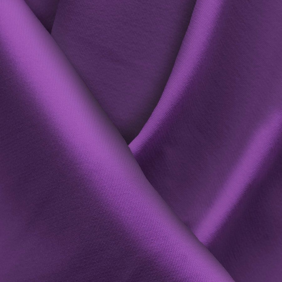 La tela base, Lycra Reciclada - Seal de 230 gr/m2, tiene un tono de color morado oscuro impreso. El CMYK del color liso es 76 96 22 12, lo que indica una alta presencia de tonos magenta y cian en comparación con el amarillo y el negro. Este tono de color puede describirse como un morado con matices azules y rojizos oscuros, lo que lo convierte en un color ideal para prendas deportivas y de baño. Este color secundario combina perfectamente con otros colores complementarios como el verde y el amarillo, así como con tonos de grises.