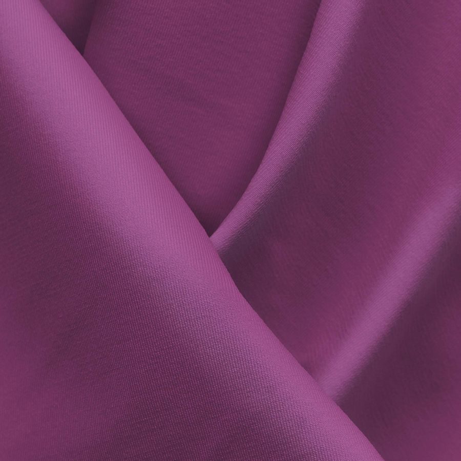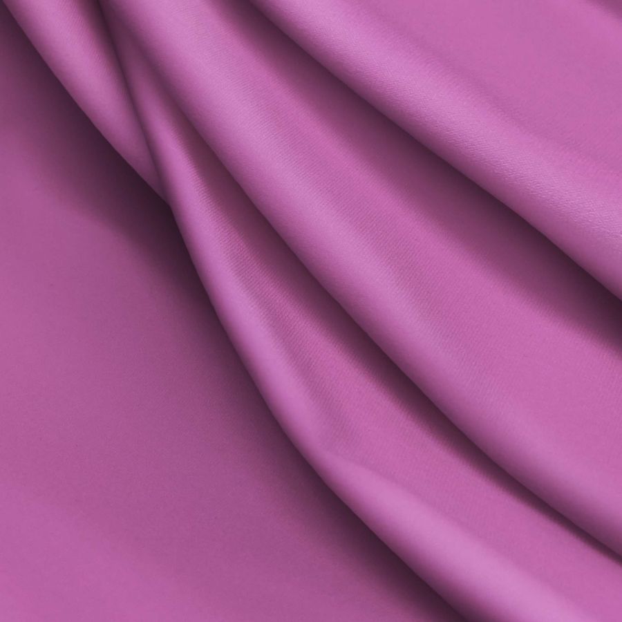 La tela base es la Lycra Reciclada - Seal de 230 gr/m2, una tela elástica y resistente compuesta por 75% poliéster y 25% elastano. El color liso impreso es de un vibrante Morado Orquídea, con un CMYK de 34 75 6 0, que representa la pureza y la creatividad. Este color es una mezcla de un tono púrpura intenso con toques de rosa, que lo hacen una elección audaz y elegante.
