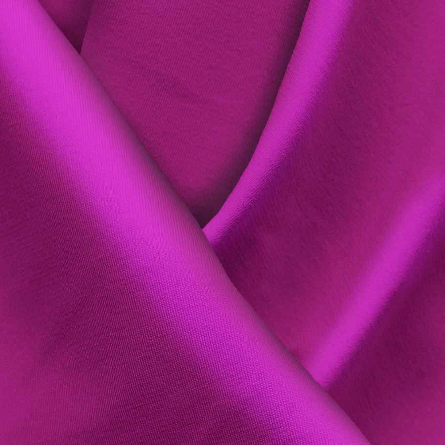 La tela base es Lycra Reciclada - Seal de 230 gr/m2, con una composición de 75% poliéster y 25% elastano. El color impreso es Morado Ciruela Rosa, con un CMYK de 35 100 1 1. Este color es intenso y vibrante, con una combinación única de tonalidades que se asemeja a un degradado cálido y atractivo. El color secundario, el ciruela rosa, agrega un toque de frescura y vitalidad al tejido, y combina especialmente bien con tonos neutros y tierra, como el beige, el blanco y el marrón claro.