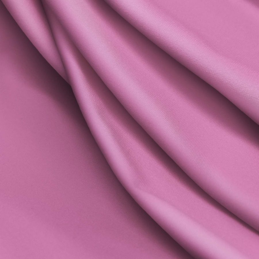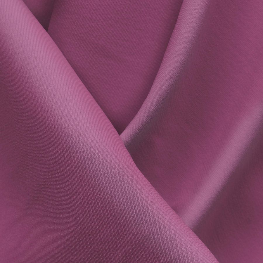 La tela base es una Lycra Reciclada - Seal, con una composición de 75% poliéster y 25% elastano, de 230 gr/m2 de gramaje y un ancho de 150 cm. El color liso impreso es un rosa Cadillac intenso, cuyo contenido de tinta representa un CMYK de 20 67 11 0. Este color se combina excelentemente con tonos pastel, neutros y grises, creando un ambiente romántico y elegante.
