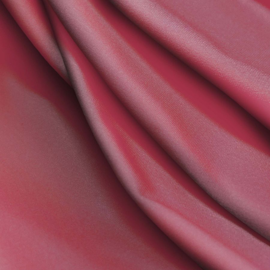 La tela base es Lycra Reciclada - Seal, una lycra elástica y resistente. El color liso impreso es Rojo Sangre, que cuenta con los siguientes atributos de color: Cyan 36, Magenta 78, Yellow 46 y Black 42, con un CMYK de 36 78 46 42. Este color secundario transmite una sensación de intensidad y pasión, simbolizando la vitalidad y la energía. Combina especialmente bien con tonos neutros, como el blanco o el negro, o colores complementarios, como el verde o el azul.
