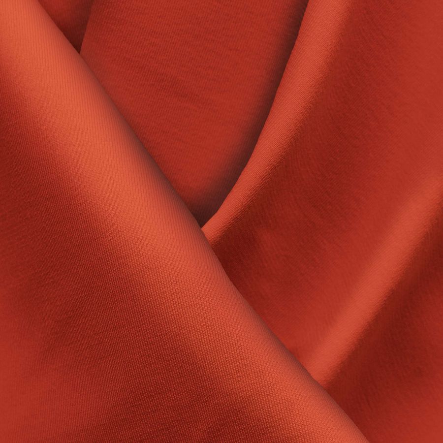 La tela base es la Lycra Reciclada - Seal de 230 gr/m2, compuesta de 75% POLIÉSTER y 25% ELASTANO, con un gramaje de 230 gr/m2 y ancho de 150 cm. Su color liso impreso es el Rojo Pimiento picante con un CMYK de 16 93 100 7. Este color es un rojo intenso con tonos cálidos, que representa pasión, fuerza y energía. El rojo pimiento picante combina perfectamente con tonos neutros como gris, blanco y negro, y también con tonos verdes y dorados.