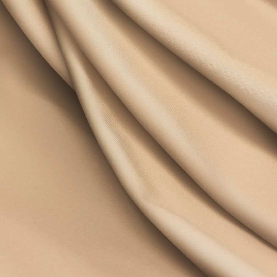 La tela base es Lycra Reciclada - Seal de 230 gr/m2, compuesta por 75% poliéster y 25% elastano, con una textura elástica y un ancho de 150 cm. El color liso impreso es un tono marrón azúcar morena, que se obtiene mediante la combinación de 10 de cian, 34 de magenta, 48 de amarillo y 2 de negro. Este color secundario es ideal para crear una estética cálida y acogedora. Se combina particularmente bien con tonos tierra, mostaza y verdes oscuros.