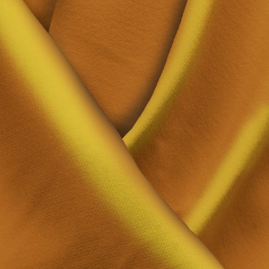 La tela base es Lycra Reciclada - Seal de 230 gr/m2 en color liso Naranja, cuya tonalidad está definida por el CMYK 18 60 100 7. Este color combina perfectamente con tonalidades cálidas como amarillos y rojos, así como con tonos neutros como el blanco y el negro. El tejido está impreso con el color liso a una sola cara por impresión digital textil, dando como resultado un color preciso y vibrante.