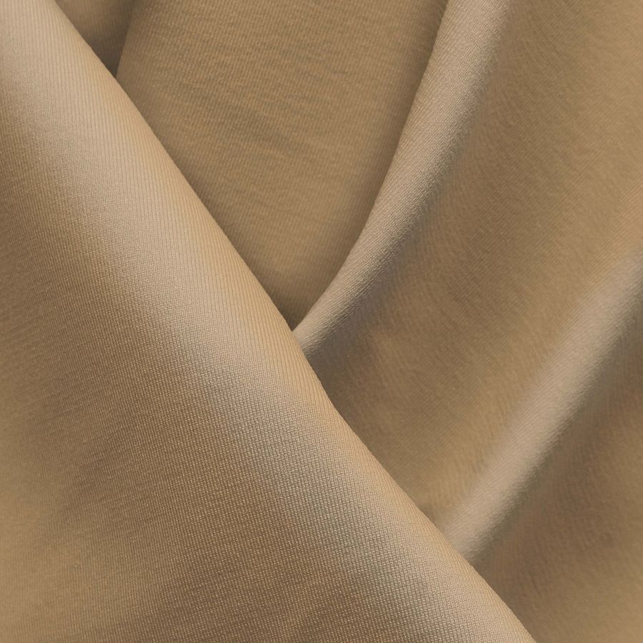 La tela base de esta prenda es Lycra Reciclada - Seal de 230 gr/m2, una tela elástica y resistente al cloro con un acabado de protección UV muy alta 50+. El color base de la tela es liso y de un tono naranja claro, con una combinación de tintas CMYK de 9 de cian, 26 de magenta, 47 de amarillo y 1 de negro. Este color secundario presenta un matiz brillante y enérgico, que combina especialmente con tonos neutros, marrones y verdes, para conseguir un efecto contrastado y vibrante. La tela está impresa con color liso a una sola cara por impresión digital textil, por lo que no es un tejido tintado sino impreso por una sola cara.