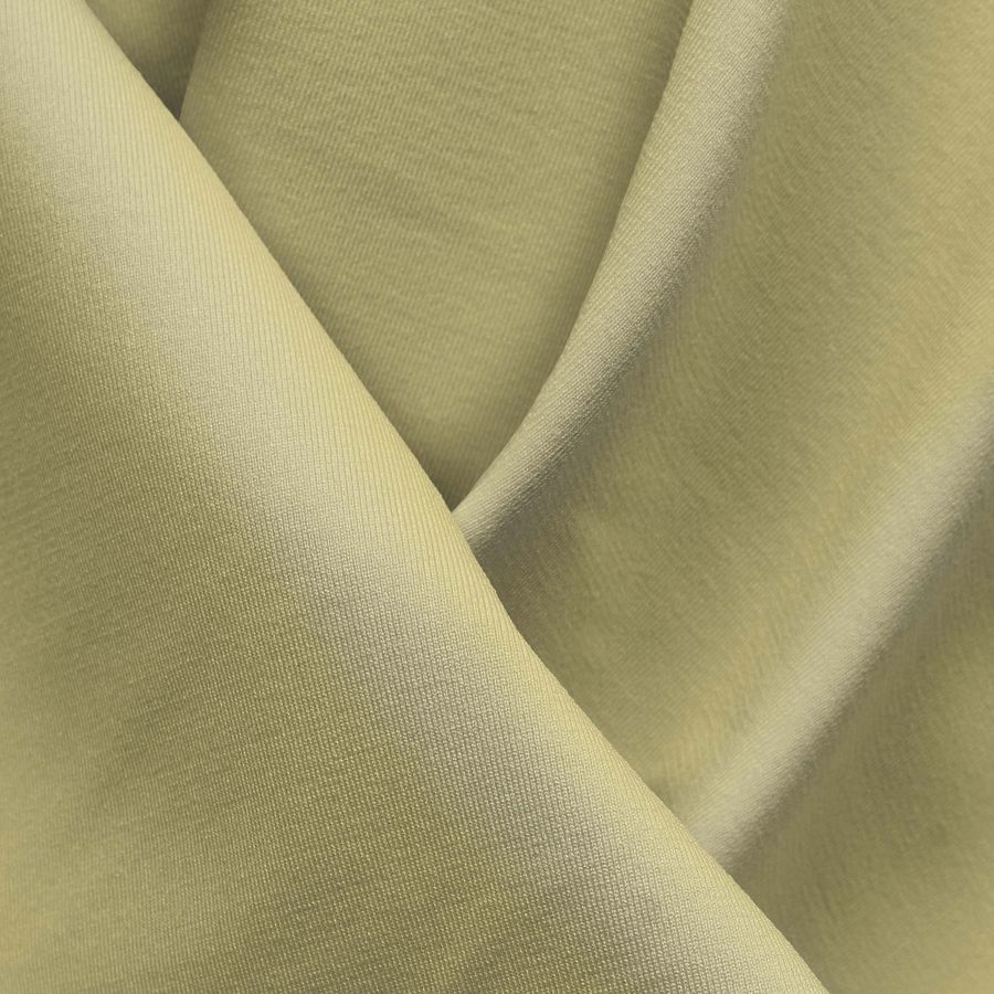 La tela base de este tejido es Lycra Reciclada - Seal de 230 gr/m2, compuesta en un 75% de poliéster y un 25% de elastano. El color impreso es un Amarillo Maíz, representado por un CMYK de 4-3-42-0 y que se combina perfectamente con otros colores de la misma gama, como los verdes y naranjas. La tela está impresa con el color liso a una sola cara por impresión digital textil, lo que significa que no es un tejido tintado, sino impreso por una sola cara.