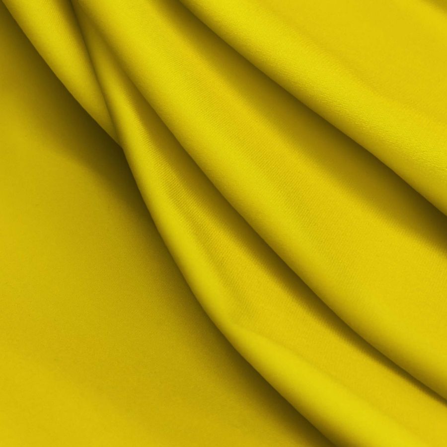 La tela base del tejido es Lycra Reciclada - Seal de 230 gr/m2, con una composición de 75% poliéster y 25% elastano. El color liso impreso es amarillo profundo con un CMYK de 13 25 96 2, lo que refleja una tonalidad fuerte y vibrante. El color secundario es muy versátil para combinarse con otros colores como negro y blanco, tonos pastel como rosa claro o azul suave, así como tonalidades más vivas como fucsia o naranja.