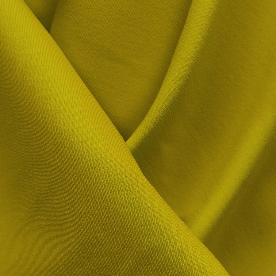La tela base es Lycra Reciclada - Seal de 230 gr/m2, compuesta en un 75% de poliéster y un 25% de elastano. El color liso es amarillo-marrón dorado, con un contenido de cian de 19, magenta de 20, amarillo de 96 y negro de 3 en el CMYK. El color secundario es un tono cálido y terroso, que evoca los tonos de la naturaleza como bosques y tierras. Combina bien con tonos azules, verdes y ocres, pero también puede ser una buena opción para complementar tonos más contrastantes como el rosa o el rojo.