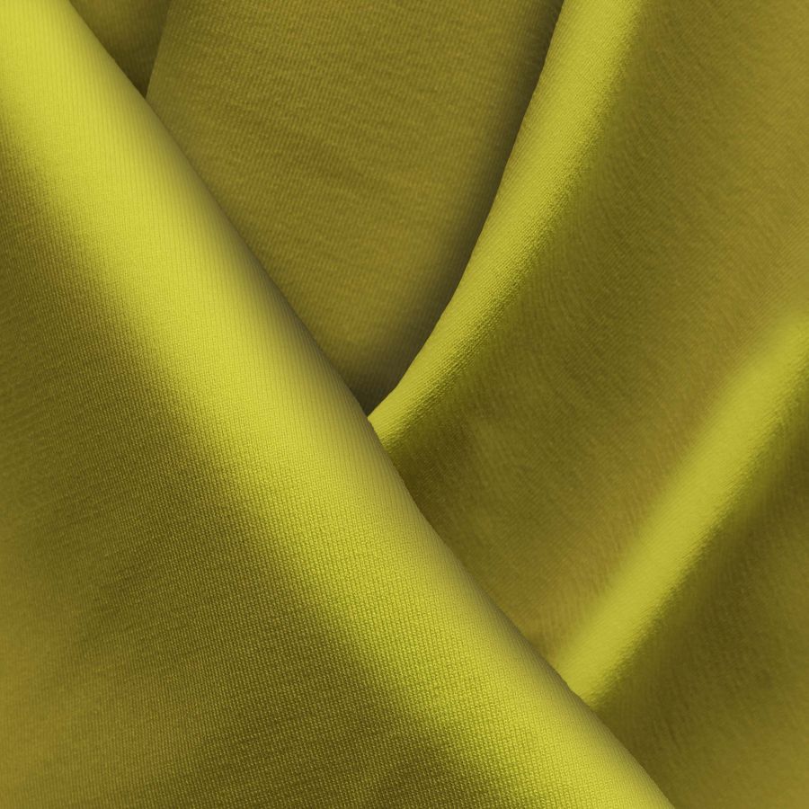 La tela base es la Lycra Reciclada - Seal de 230 gr/m2, compuesta por 75% POLIÉSTER y 25% ELASTANO, con un gramaje de 230 gr/m2 y un ancho de 150 cm. El color liso impreso es un tono verde olivo con un CMYK de 40 35 100 20. Este color tiene un carácter simbólico que representa la frescura de la naturaleza y la energía vital. Técnicamente, su tono tiende a inclinarse más hacia el verde que hacia el amarillo, lo que le da un aspecto natural y armonioso. Es un color secundario intenso que combina bien con otros tonos naturales como el marrón, el beige y el naranja.