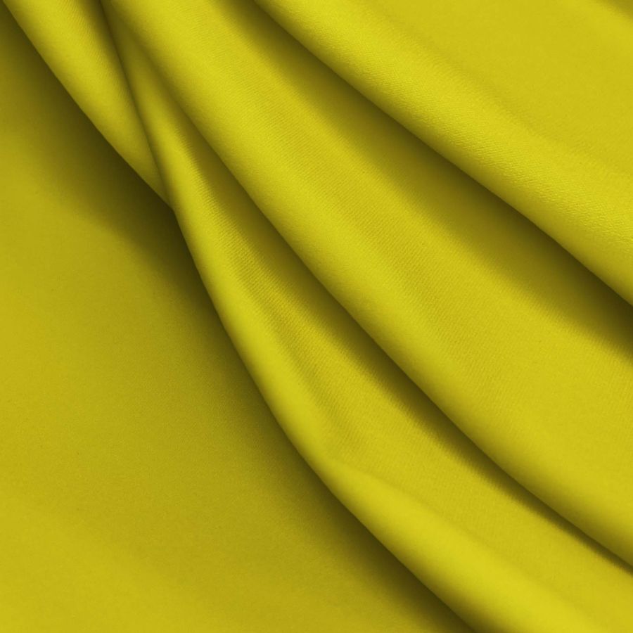 La tela base es Lycra Reciclada - Seal de 230 gr/m2 de tipo Lycra con una composición de 75% poliéster y 25% elastano en un ancho de 150 cm. El color liso impreso es verde olivo con un CMYK de 26 22 98 5. Este color representa la estabilidad y la seguridad de la naturaleza, aportando un toque de elegancia y sofisticación. Combina perfectamente con tonalidades tierra, blancos y rosas pálidos.