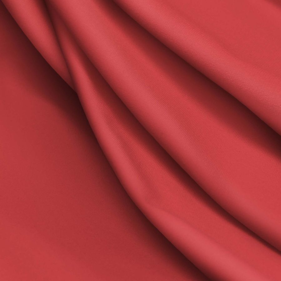 La tela base es la Lycra Reciclada - Seal de 230 gr/m2. El color liso impreso es un Rojo Vino tinto con un CMYK de 19 87 72 9. Este color secundario combina especialmente con tonos beige, dorados y colores oscuros como el negro. La tela está impresa con el color liso a una sola cara por impresión digital textil.