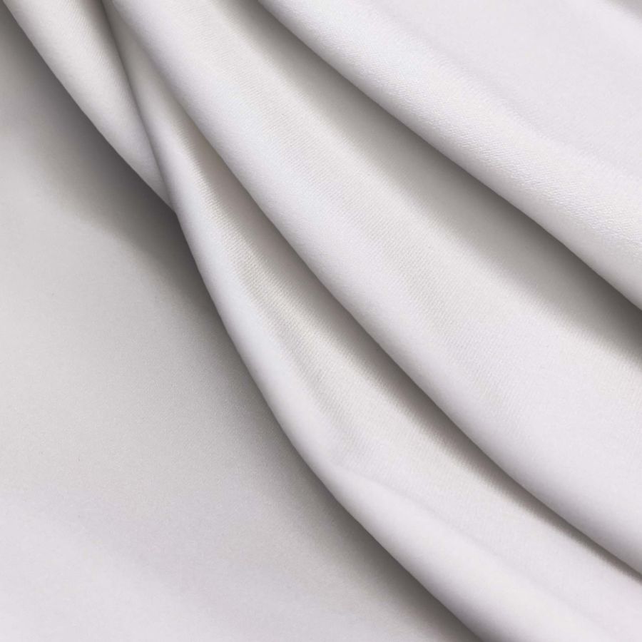 La tela base es Lycra Reciclada - Seal de 230 gr/m2 de tipo Lycra, compuesta por 75% POLIÉSTER y 25% ELASTANO con un gramaje de 230 gr/m2 y un ancho de 150 cm. El color liso impreso es una combinación de Blanco y Perla, con una tinta Cyan de 3, Magenta de 9, Yellow de 2 y Black de 0 y un CMYK de 3 9 2 0. Este color secundario presenta un tono claro y suave, que combina especialmente bien con tonos pastel y neutros, siendo muy versátil para la ropa deportiva, bañadores y lencería en el mercado actual.