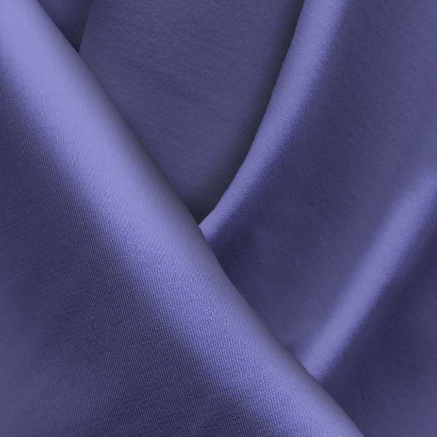 La tela base es de Lycra Reciclada - Seal de 230 gr/m2, con una composición de 75% POLIÉSTER y 25% ELASTANO. El color liso impreso es Morado y Azul marino púrpura, obtenido a través de la técnica de sublimación en el proceso de impresión. El CMYK del color liso es 80 73 22 7, lo que proporciona una tonalidad rica y vibrante al tejido.