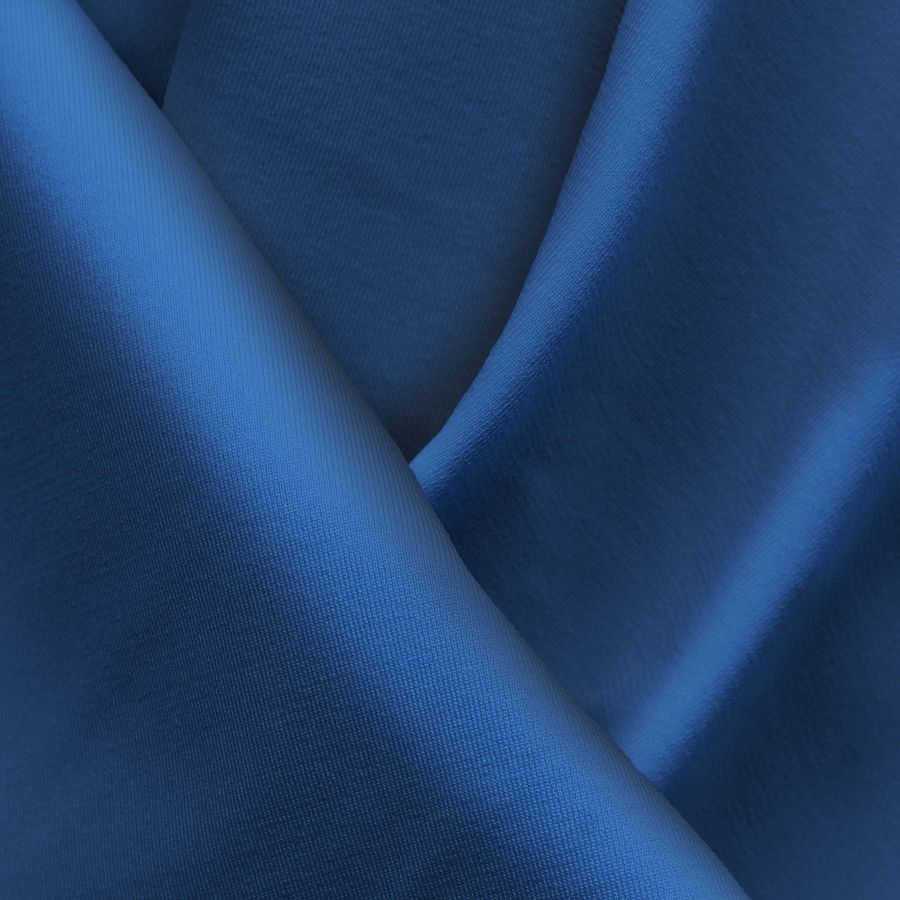La tela base es la Lycra Reciclada - Seal de 230 gr/m2, una lycra compuesta por un 75% de poliéster y un 25% de elastano, con una textura elástica y resistente al cloro. El color liso impreso en esta tela es el Azul Lapislázuli, con un CMYK de 100 79 29 13, lo que genera un tono azul intenso y profundo. Este color combina muy bien con tonos tierra, beige y cremas, resaltando así aún más su elegancia y sofisticación. Es importante mencionar que la tela está impresa con el color liso a una sola cara por impresión digital textil, lo que significa que no es un tejido tintado sino impreso por una sola cara.